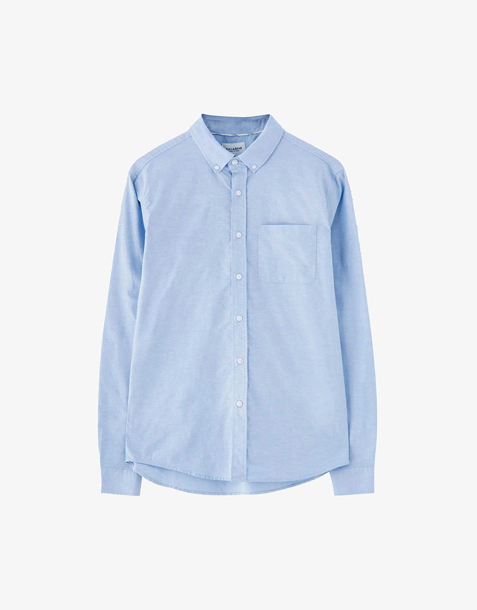Camisa de manga longa em tecido chambray leve e confortável. Versátil para looks casuais e arrumados.