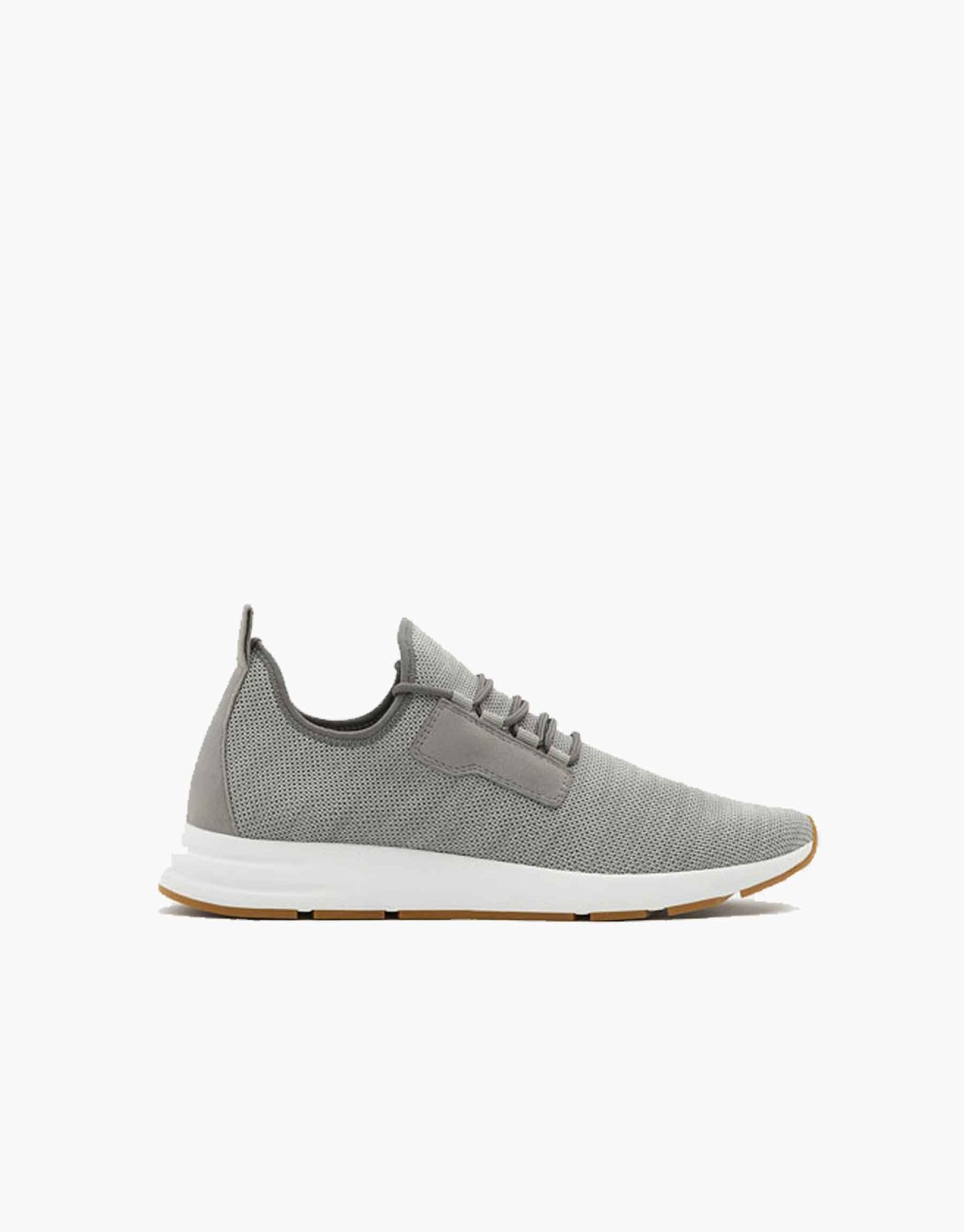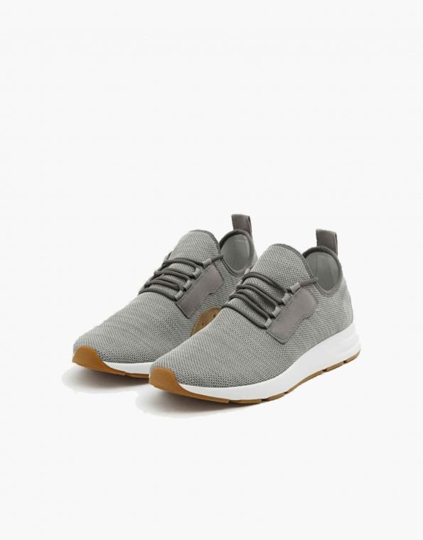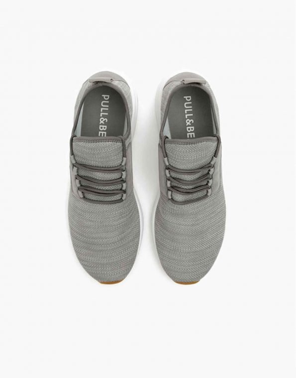 Tênis runner Pull & Bear em tricot cinza. Design moderno, leve e confortável para o dia a dia com solado contrastante.